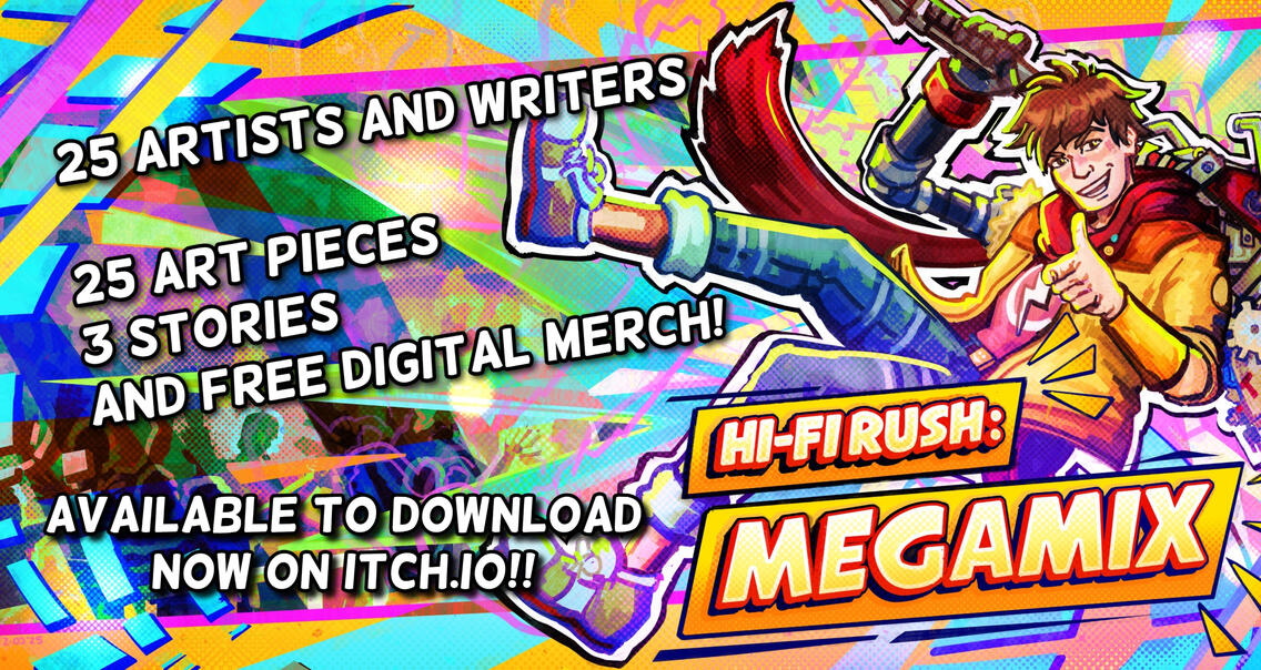 Hi-Fi Rush: MEGAMIX - A fanzine project of the hit game, Hi-Fi Rush! Featuring 25 different artists and writers AND a free digital merch pack!